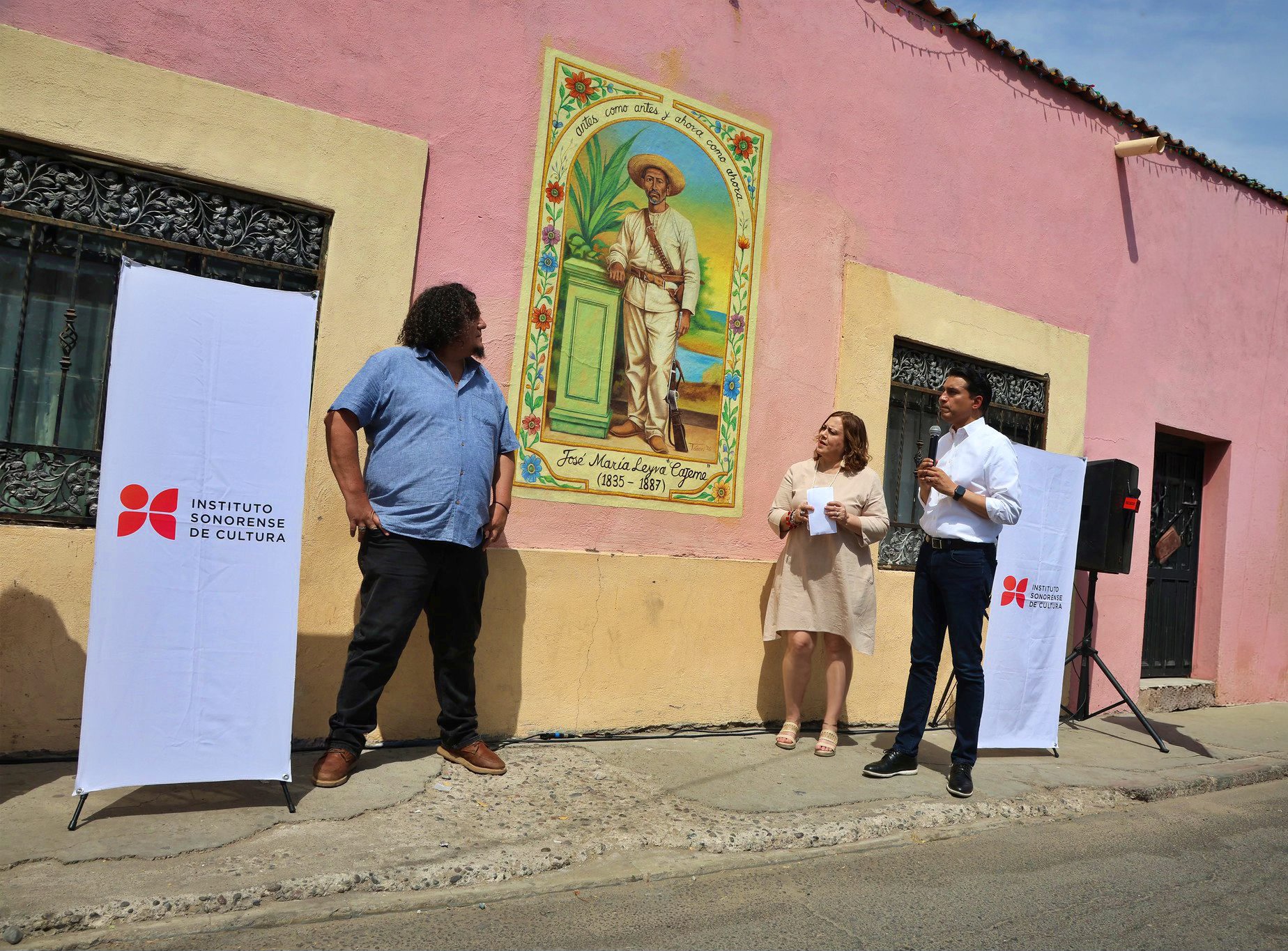 Autoridades estatales develaron un mural en la colonia La Matanza, en Hermosillo, en conmemoración de José María Leyva “Cajeme”, realizado por el artista Rosendo Tánori.